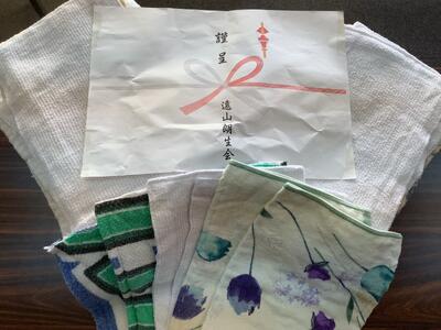 遠山地区の朗生(ろうせい)会から、雑巾を寄贈していただきました。