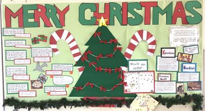 ツリーや絵本、切り絵etc…校舎のあちらこちらに、飾られています。