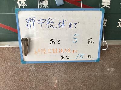 中総体まで あと5日となりました。昇降口にあるカウントダウン掲示板の日にちが少なくなると 熱気が高まってくるようです。頑張れ向洋中!*\(^o^)/*