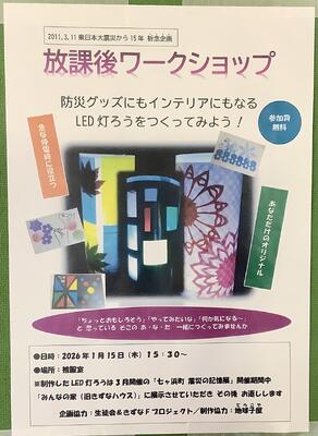 震災の伝承に向けて、様々な活動を企画している「地球子屋(てらこや)」から石木田さんをお迎えして、LED灯ろうを作りました。