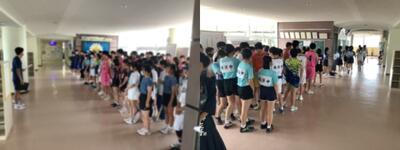 今日は、これから壮行式。いよいよ体育館に入場だ💨